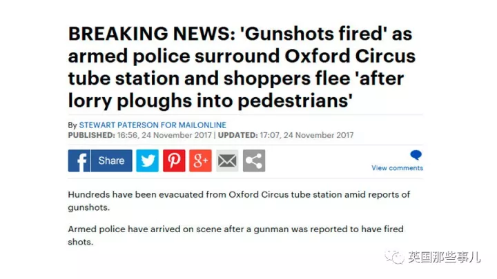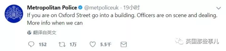 地面上的混乱,警方也无法确认枪击是否存在。 他们对外表示 “我们正以疑似恐怖事件处理这件事情” “如果你在牛津街,快点找一个建筑躲起来。我们正在处理问题,有信息会告知大家。”