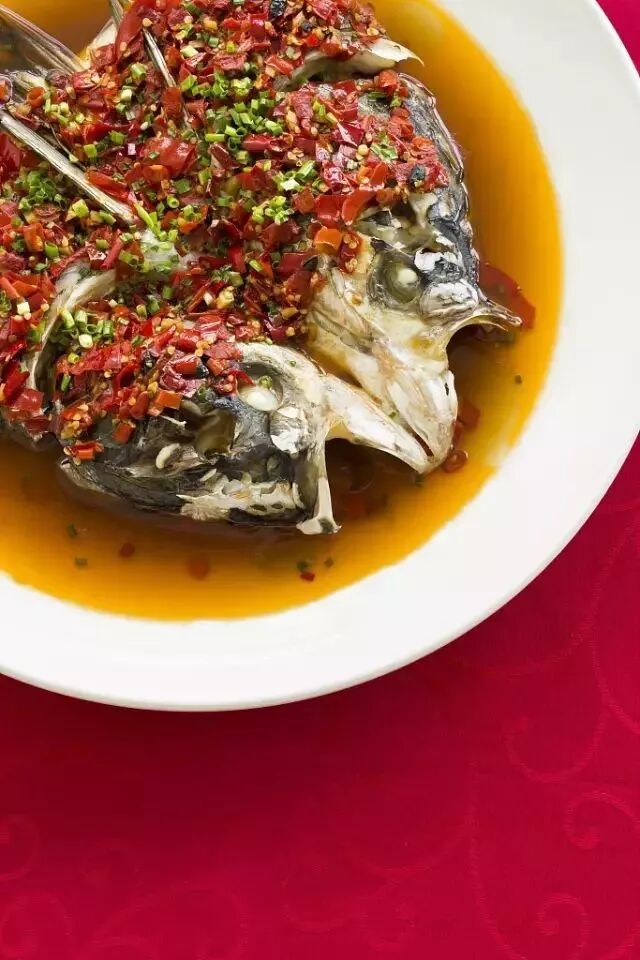6.蒸锅中水烧开,鱼头上锅蒸8分钟