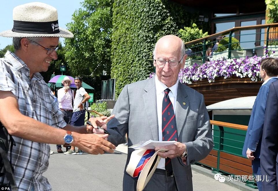 曾经代表英格兰夺得1966年世界杯冠军的最大功臣博比·查尔顿居然也来看网球,