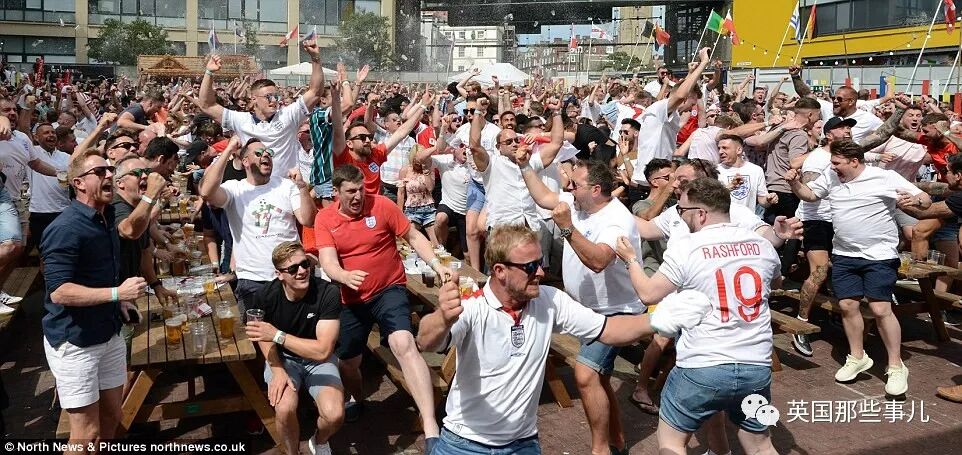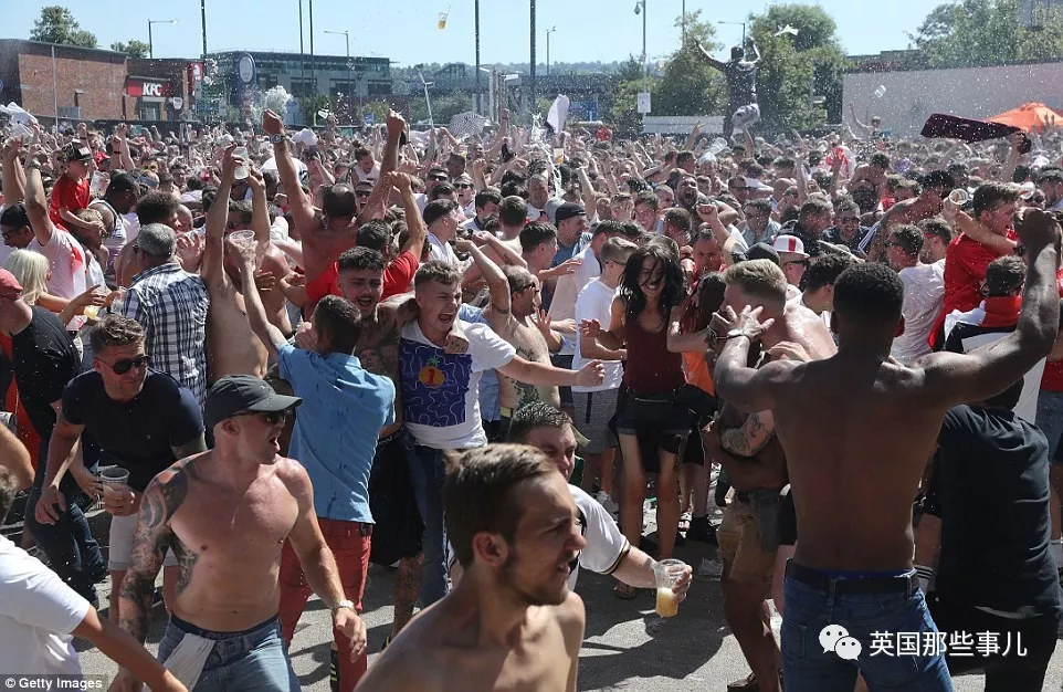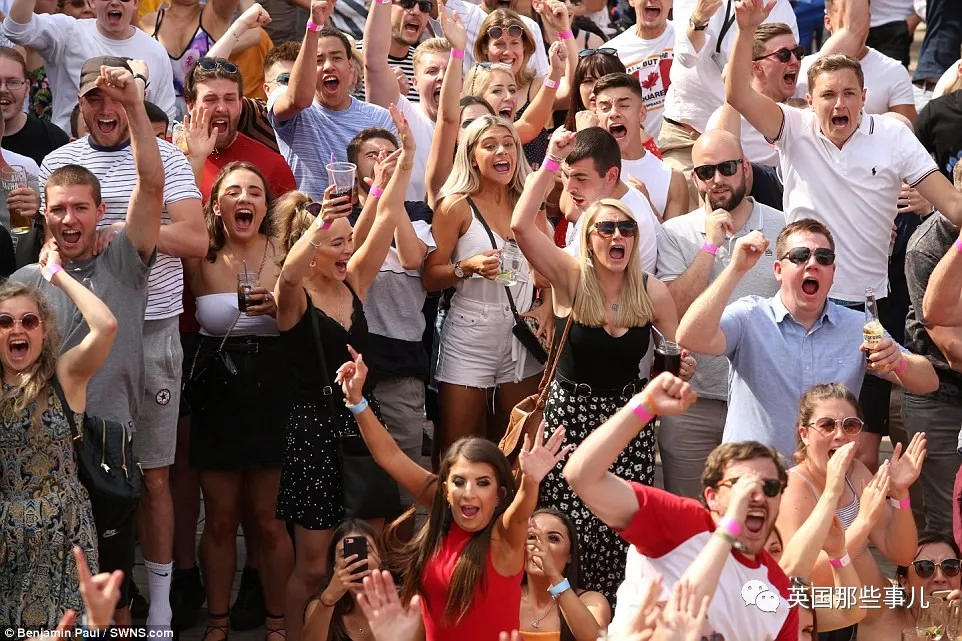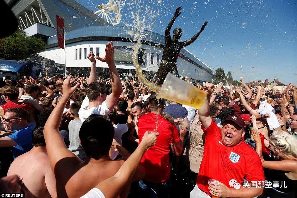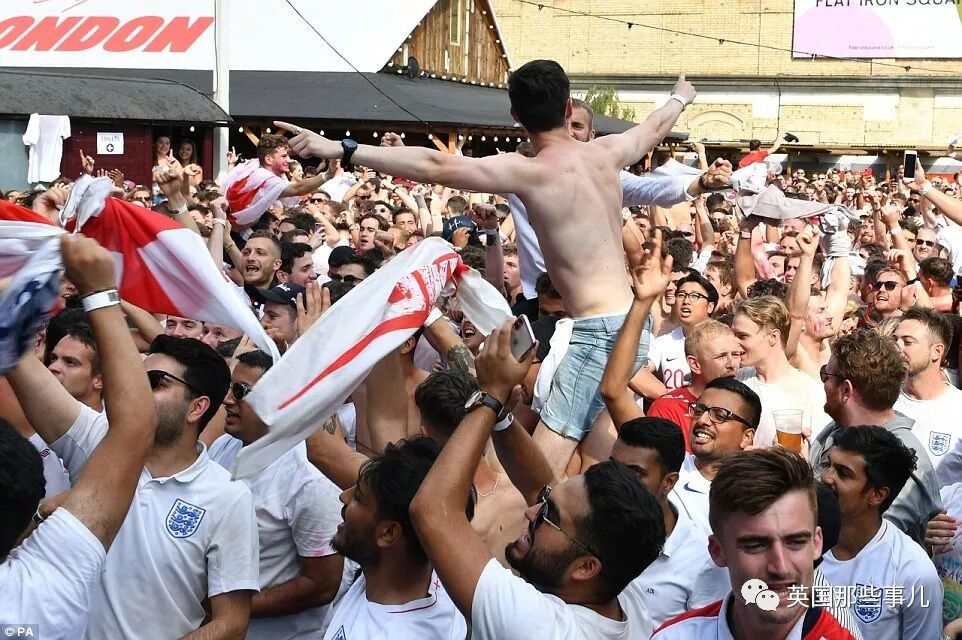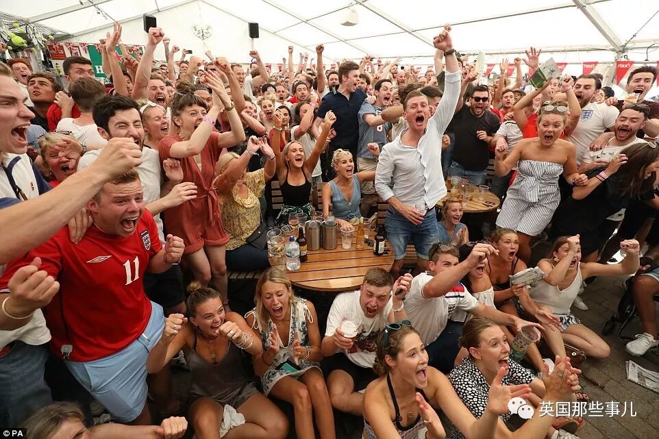 现在进入4强,英国人就已经嗨成了这样了, 下周三半决赛对阵克罗地亚的时候, 三狮也要继续给力啊!