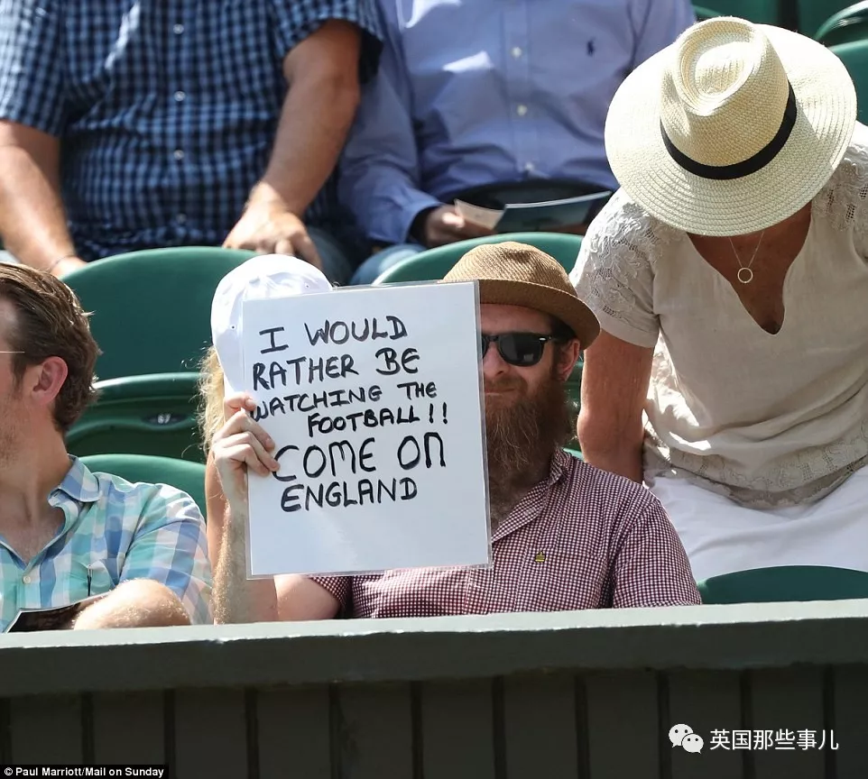 有举牌子的: “我更想看足球!!i 加油英格兰!”