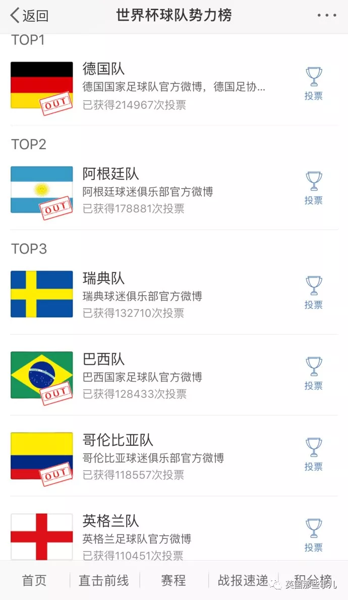 当然, 除了英国球迷,中国的球迷也是相当激动, 不知道大家还记不记得有“毒奶榜”之称的“世界杯球队势力榜”… 几乎是谁上谁凉的节奏…