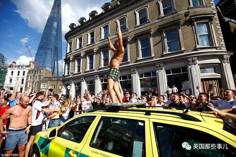 昨天英格兰2-0战胜瑞典之后,整个英国都沸腾了…