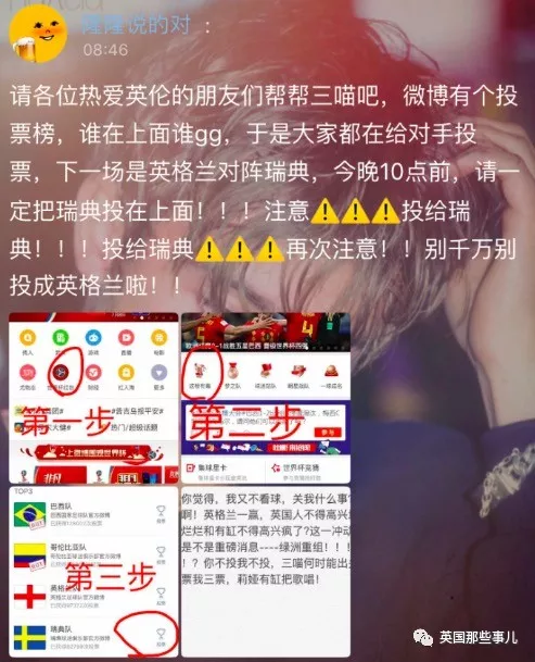 国内的三喵球迷们急了, 各种在网上号召人们给瑞典队投票, 操作方法一步一步给你画出来,