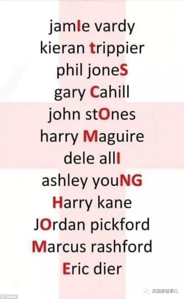 还有网友用英格兰球员的名字,排出一句:its coming home…