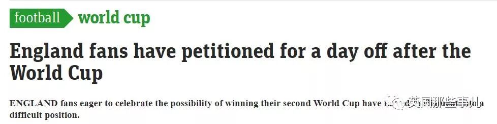 球迷们的心情完全可以理解。 所以,社会各界也都尽可能地表现出了支持。 比如,今天还有媒体报道,英国工党领袖科尔宾通过发言人表态, 如果英国能够赢得世界杯,那就提议政府把决赛那天定为一个法等节假日!