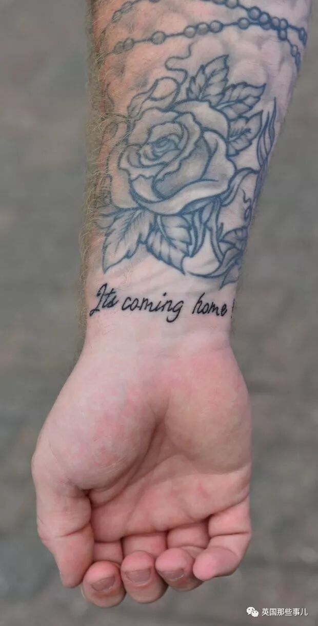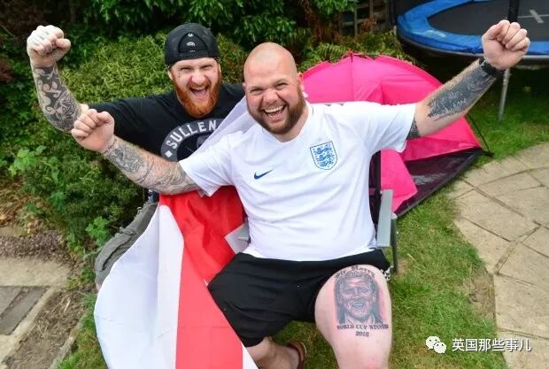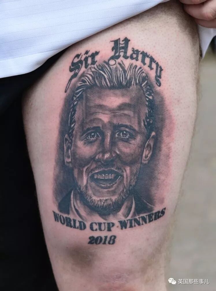 另外,还有一部分人可能觉得光是穿球衣之类的心不够诚, 已经把“英格兰·2018世界杯冠军”的图案纹上身了: