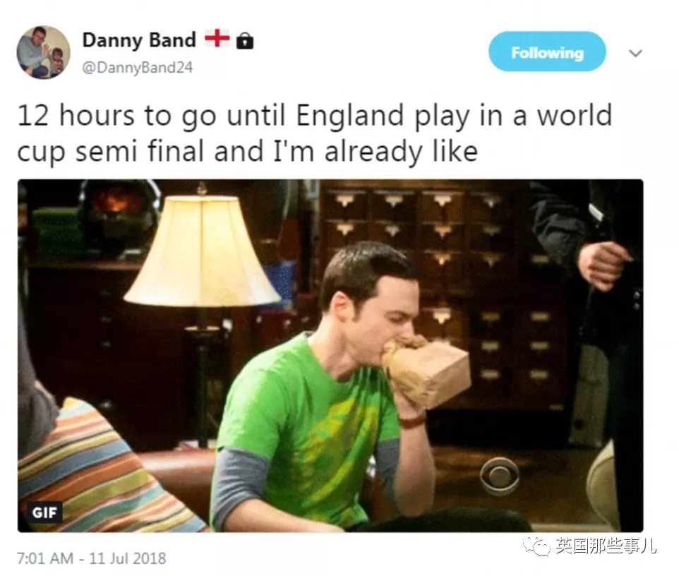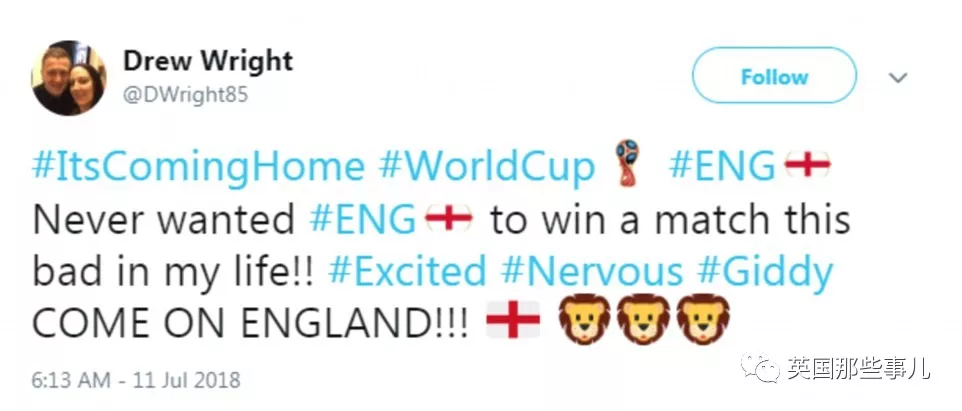 “这辈子从来没有哪场比赛让我这么期待英格兰能赢!加油啊英格兰!”