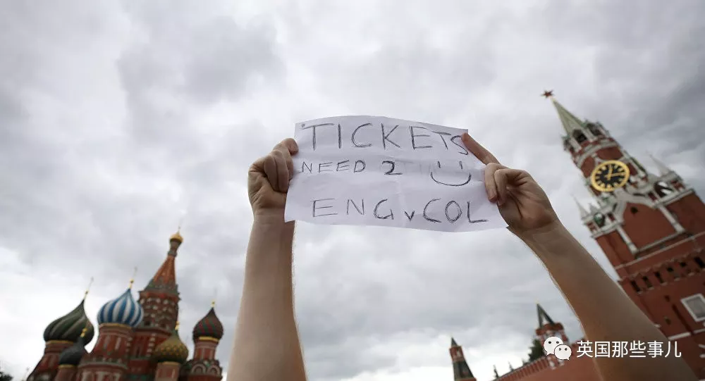据媒体估计,目前已经有10万英格兰球迷请假赶到了莫斯科, 所有人都希望能进入到半决赛球场,但票肯定是不够的。 所以,现在的现场球票,最低都已经涨到了500镑一张了, 但是还有球迷到处举着牌子想要买票却买不到。 “500镑算啥!那可是要参加半决赛的英格兰队啊!”