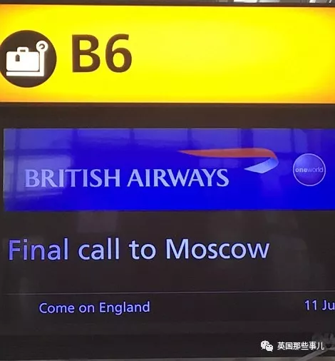 就连英国航空飞往莫斯科的航班, 也忍不住为英格兰打气: “加油啊英格兰!”