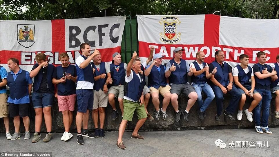 还有一些英国球迷们,对光穿马甲这件事并不够。 他们选择一个更有“味道”的支持方式: 自从上周六1/4决赛,英格兰击败瑞典队后, 他们就没有洗过那天穿的衣服!