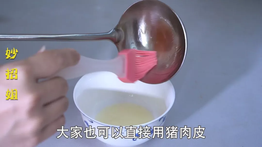 接着在上面刷上一层食用油,大家也可以直接用猪肉皮在上面蹭几下,效果也是一样的