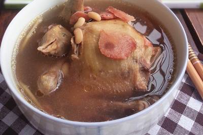 主料:鸽子1只 辅料:食盐1茶匙 眉豆50克 姜4片 土茯苓100克 水适量 做法: 1.准备所需材料 2.白鸽放开水中氽去血水,捞起洗净 3.将所有材料放入汤煲中 4.加入适量水 5.水不要加太满,八成即可 6.坐炉子上大火煲开,转小火煲2小时 7.加入食盐即可