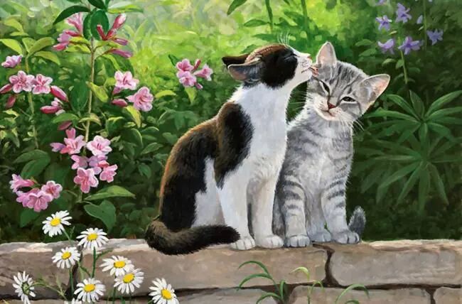 蓉逸 决定养宠物前,做过一番观察。 温哥华常下雨,又是北极寒带。冬季雨雪夜里看着那些穿着雨衣遛狗的,不免觉得,人狗都冷啊。而且狗太好,太粘人,时刻想讨人欢喜,又太听话,于心不忍,猫就不会。狗有主人,猫却有工人。 所以选择猫。那么无助的小动物,应该无条件被宠爱。无比庆幸当初的这个选择,满有灵性的喵星人使我终身受益。 当猫妈后我惊喜地发现,原来这是一条喵星人街,很多猫,有几家还养了两只。 右邻的两只室内猫,总是坐在窗台前。一只瓜子脸,丹凤眼,始终保持姿势优雅,像民国时期穿旗袍的女人。另一个圆脸,很年轻,两只漂亮的耳朵,一对蝴蝶结,一个美丽活泼很KAWAI的日本小姑娘。这一对东方璧人,自然招来我家儿子小贝,英武帅气的缅因浣熊流连忘返。他总是在她们窗下,申出两腿,竭力地趴在那里看。她俩也被西猫小帅哥迷住了。之间有对话,有眉目传情,特别是小姑娘。可惜她俩都不能出门,导致“枫中奇缘”,喵星人版本的《风中奇缘》没能进行下去。