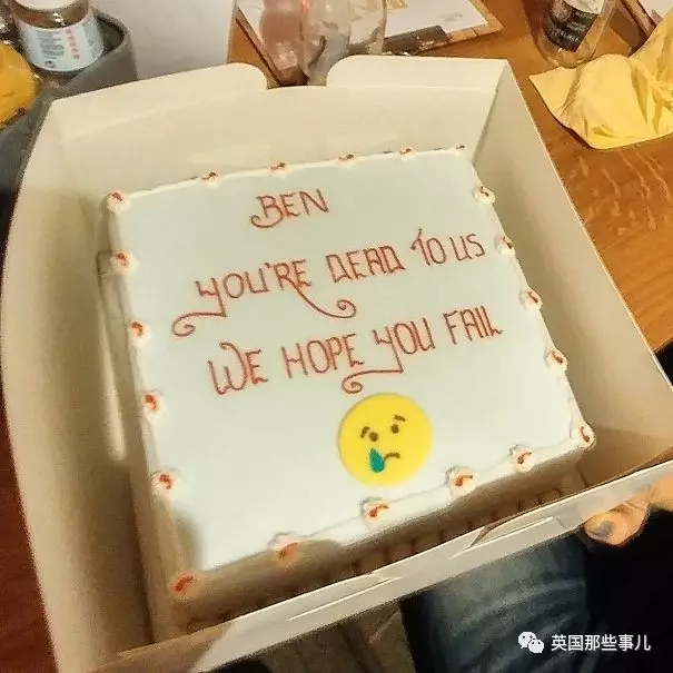 今天我离职,这是贴心的同事们送我的蛋糕: “BEN,对我们而言你已经死了,我们希望你永远不会成功”
