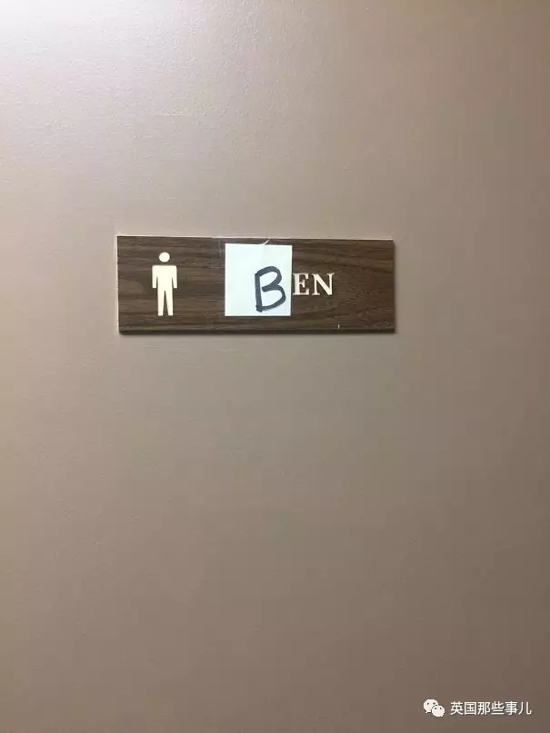 我们办公室里其实只有一位男士,名字叫Ben,所以我们把男厕所的标志小小修改了一下…Men→Ben…