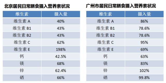即使是经济相对发达的一线城市也普遍存在日常膳食营养素摄入不足的状况