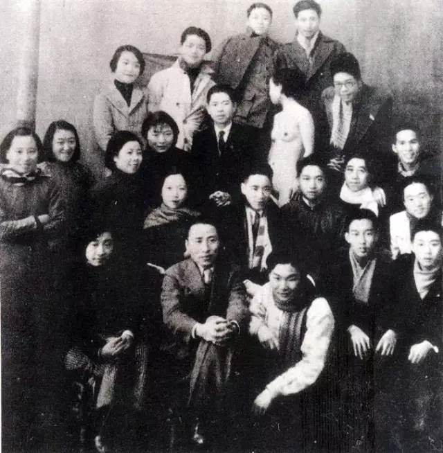 中国第一个女性人体模特。照片是上海美术专科学校第17届西画系的师生和模特儿。当时迟瑶20岁上下,在学校里做了一年左右的模特儿。