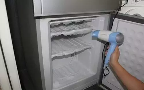 电冰箱在使用一段时间后需要化霜。每次化霜要较长时间,若打开冰箱冷冻室的小门,用电吹风向里吹热门,则可缩短化霜时间。