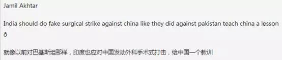 “好吧,请让我们理性一点……中国有230万兵力,全球第二大的空军和海军,经济实力是印度的5倍,GDP增速达7%。制造业远远超过我们,更好的基础设施、健康、住房,还有足够的厕所……你真的认为印度能对抗中国吗?”