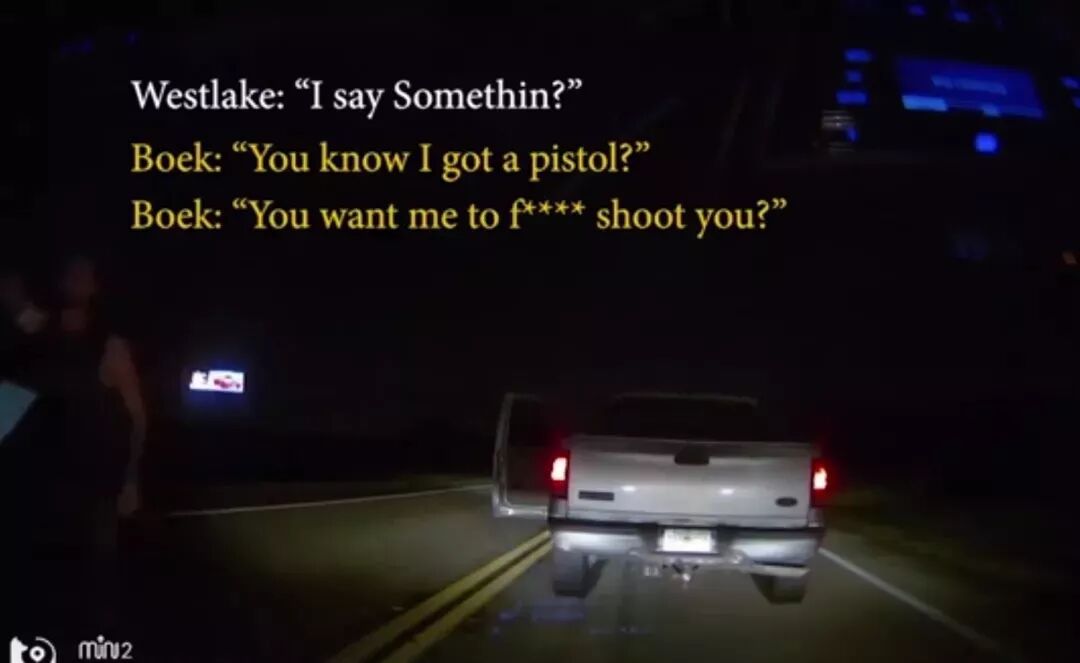 然而话音刚落,就在皮卡车司机走出行车记录仪的范围时,听到一声枪响。然后就是女乘客和韦斯特莱克的感叹声:“Oh! my god!”