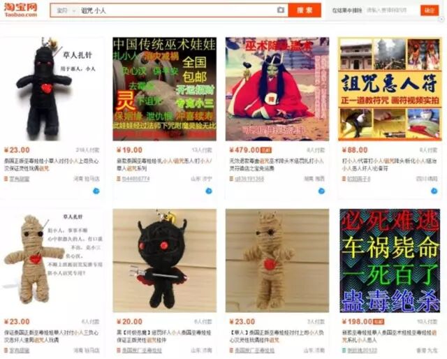 辣么腻害?!今天咱就一起揭秘下这个神秘的“诅咒术”。 首先呢,在某宝输入了“诅咒小人”这一关键词,果然有不少商家在出售“诅咒术”的相关商品!