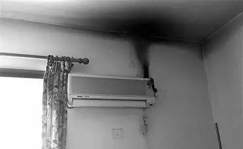 △2017年5月,福州一户家庭,空调在未开机下出现起火自燃。