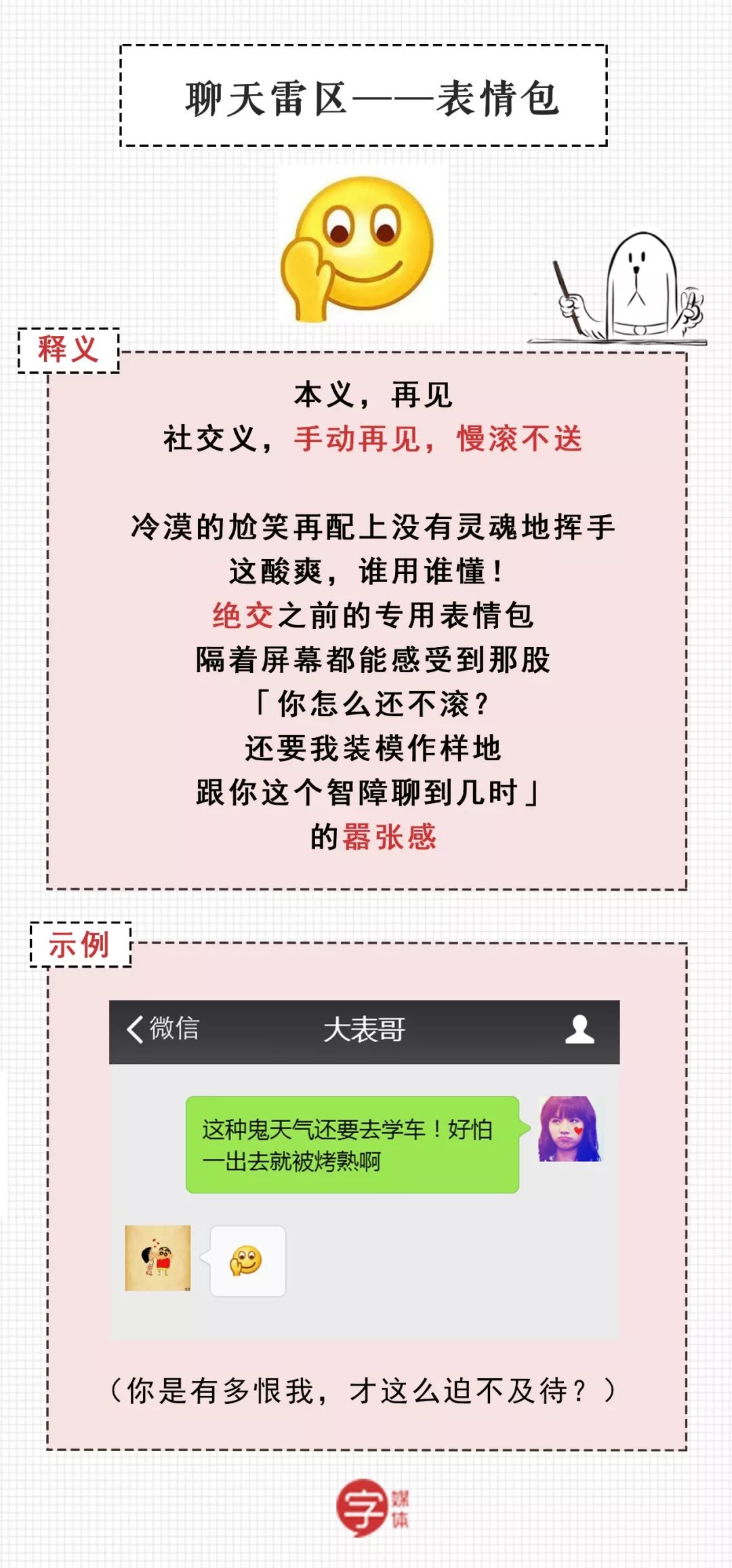 随着社交方式的更新换代 一套神秘的「线上聊天生存法则」 正在慢慢形成 有些在以往看来平平无奇的词语/表情 如今却成了被拉黑的导火索