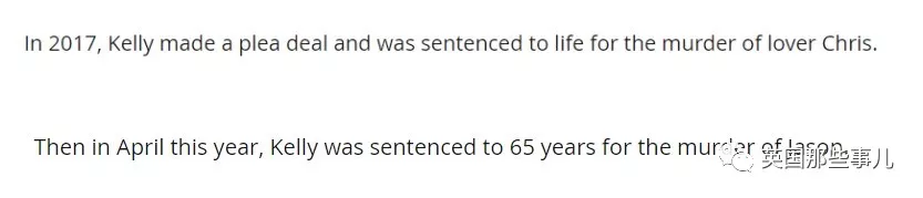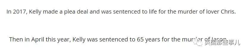 2017年,Kelly由于谋杀Chris被当地法院以谋杀罪判处终生监禁。 2018年4月底,法院再次判定Kelly因谋杀丈夫Jason而被判处65年有期徒刑。