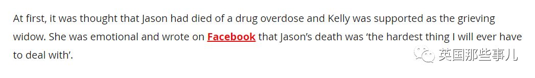 Jason就这样由于服用海洛因过量而身亡了, Kelly在Jason死后表现出了异常的悲痛,她还在当时自己的社交媒体上写了这么一句话: “Jason的离开是我不得不面对的最艰难的事情。”