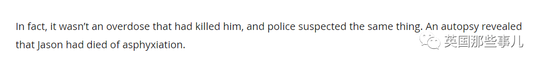 果然,Jason的死远没有这么简单, 尸检报告显示,他的死亡不是因为海洛因,而是窒息而死。