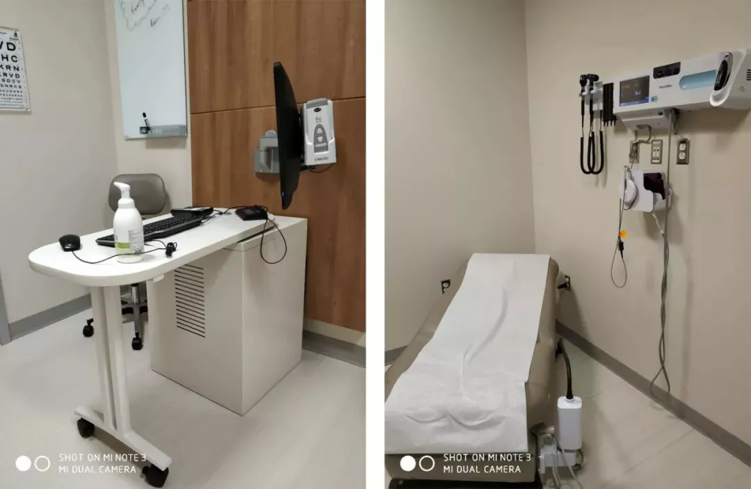 之后专门的medical assistant(医疗助理)把我领到了诊室,测量了我的生命体征,美国的诊室非常高级,设备一应俱全,我坐在检查床上,那个助理用遥控器抬高了病床,我的体重就出来了,还有全自动血压计,体温计等等。