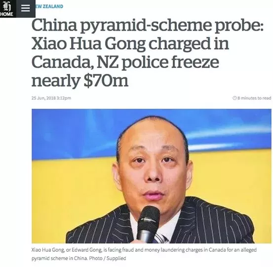 (图片来源:FINANCIAL REPORT) 华人Xiaohua Gong(音译:龚晓华)在新西兰银行账户有近7000万元被冻结,换算成人民币有将近3.5亿! 他于去年12月在加拿大被捕并被控欺诈和洗钱被起诉,是新西兰史上被冻结财产数额最大的人“当之无愧”。 而这位龚晓华之前在国内就曾被通缉,由于他涉嫌国内欺诈,传销和洗钱活动。本以为可以逃之夭夭,没想到CRS全球共享信息的环境下,还是最终成为落网之鱼。