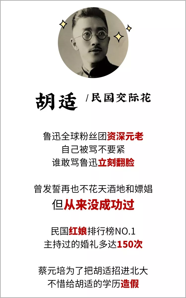 既然说到了大师嫖娼,第一个要点名的肯定就是胡适 虽然胡适自称是“怕太太协会”会长 但从他青年时期的容貌来看,也肯定是个桃花不断的人才