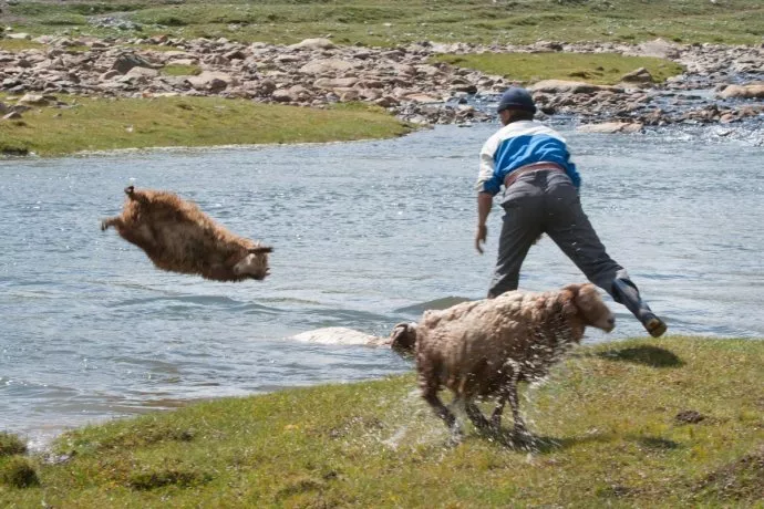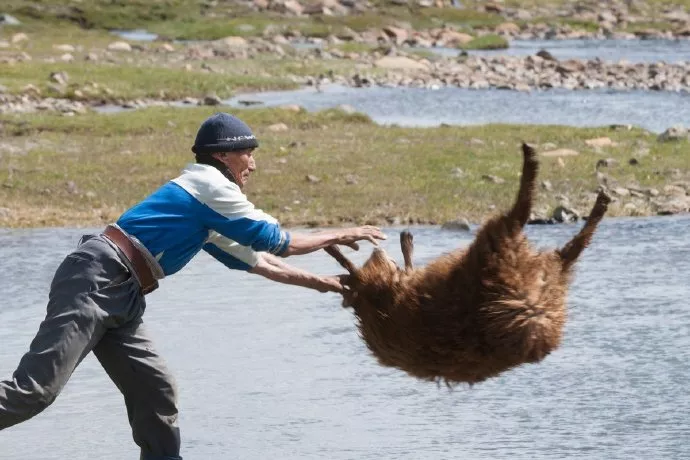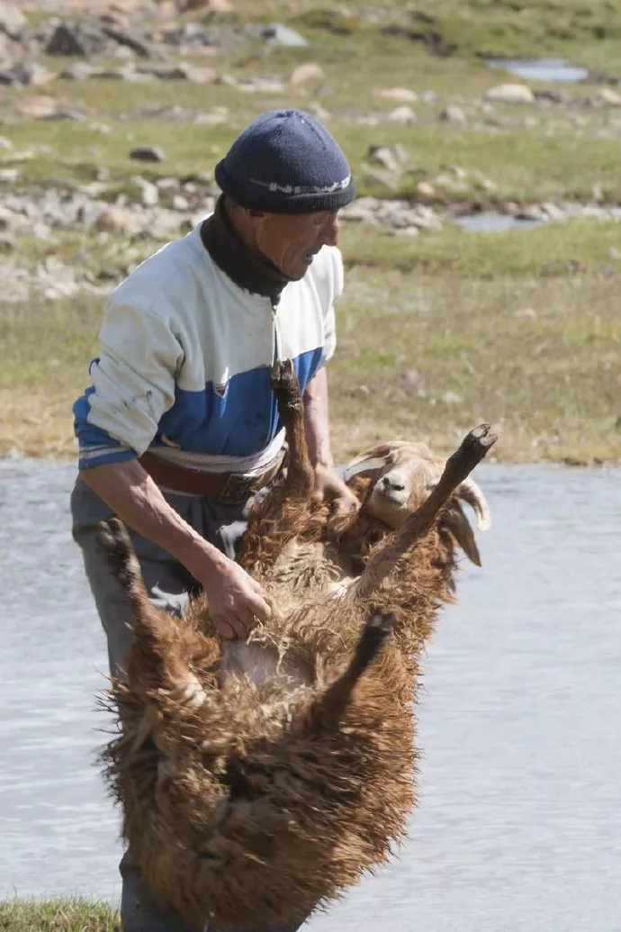 一组“蒙古式洗羊”的图火了 据说当地的牧民 会奋力地把羊扔出很远 因为这样能把毛洗得更干净漂亮 👇