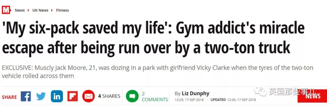 不过就在最近, 一名英国小哥在亲身经历了一起可怕事故之后表示: “腹肌不光负责美观,它还可以在关键时刻救人一命啊!”