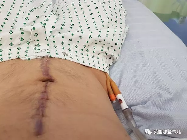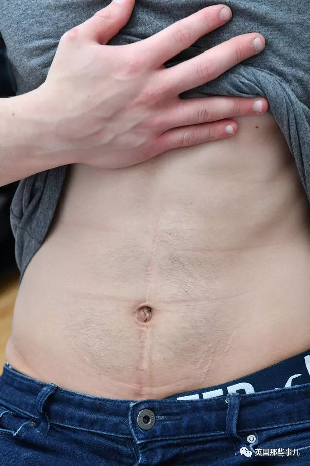 然后再撩起衣服看看,原本结实的腹肌不见了,取而代之的是一道深深的疤痕: