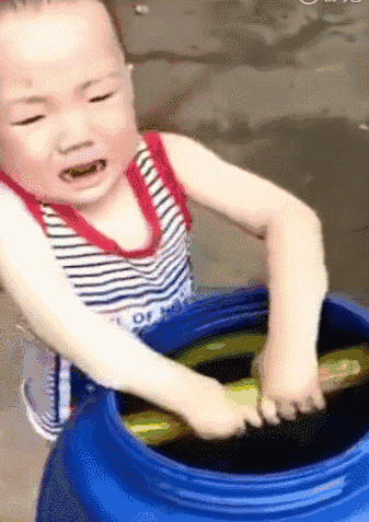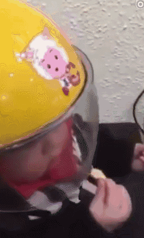这位宝宝 隔着透明头盔吃不到手里的东西 急的又蹦又哭