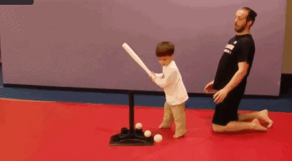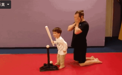 爸爸就说“把眼睛放在球上” 然后 孩子真把眼睛“放”在了球上面…… 真是个耿直boy
