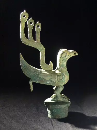 而三星堆的研究成果显示,三星堆文化的源头在茂县。2009年修复地震震坏的汶川县布瓦碉群发现了"布瓦遗址",距今4800年,认定为三星堆文化源头。而汶川山高水急,不可能有原发性的文化,因此,源头也在青海的河湟地区。也即是,三星堆文化与羌族在五千多年前共同自青海甘肃进入四川岷江流域地区,三星堆的先民创造了当时中国最先进的三星文明。 因此,可以判断三星堆文明来自于西亚。 下面的图片多为金沙遗址:
