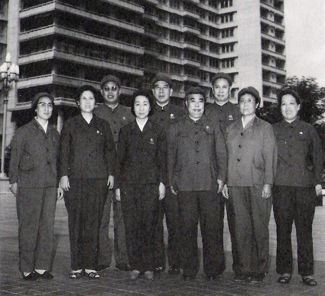 ● 1970年在京西宾馆。前排左起:董其采、胡敏、叶群、吴法宪、项辉方、陈绥圻。後排左起:李作鹏、黄永胜、邱会作。(邱会作回忆录)