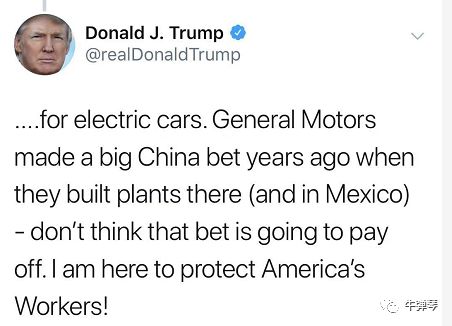 感觉还不解恨,过了一会,作为推特驻白宫首席记者的特朗普,又推特二连发,对通用汽车是一顿痛骂。两条推特大致是这样说的: