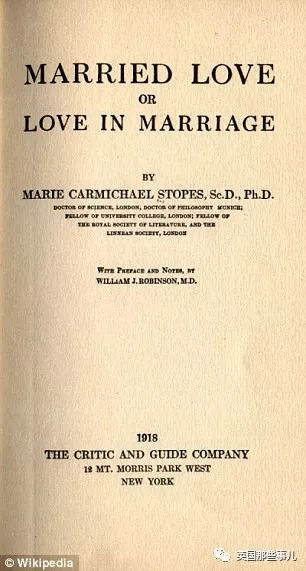 也恰好是在整整一百年前的1918年, 她出了一本书,书名叫做《婚姻之爱》。 这并不是一本浪漫小说,也不是关于Stopes专业的学术作品, 而是一本夫妻性生活指南。