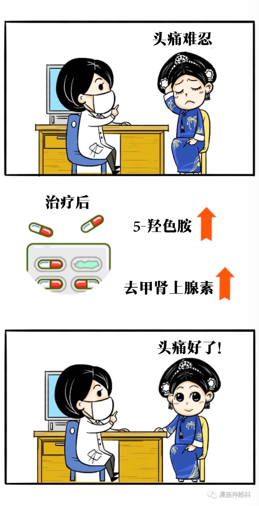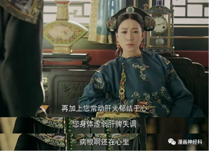 神经内科医生认为这是焦虑/抑郁情绪导致的头痛(这其实和剧中太医的诊断基本一致),建议皇后使用抗焦虑/抑郁药物(这个清朝太医院还没有)。