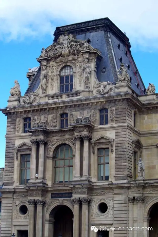 卢浮宫Pavillon Turgot大厦,南面山墙的雕塑和女雕像柱子,作者Eugene Guillaume。