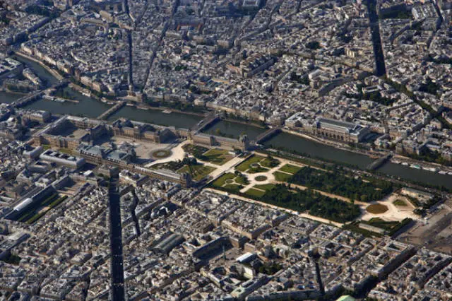 巴黎,塞纳河畔,卢浮宫博物馆俯瞰全景。隔河相望的是奥塞博物馆。