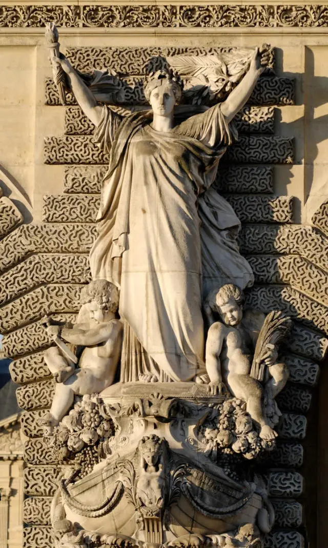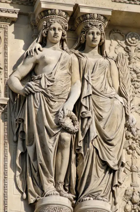 卢浮宫Pavillon Richelieu 大厦,支撑山墙的“双女”雕像柱子,作者Hector Lefuel。