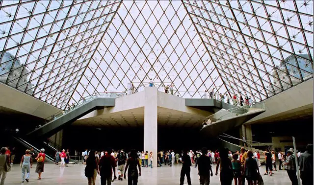 宫前的金字塔形玻璃入口,是华人建筑大师贝聿铭设计的。占地面积60,600 平方米,世界最大的博物馆之一。同时,卢浮宫也是法国历史上最悠久的王宫。