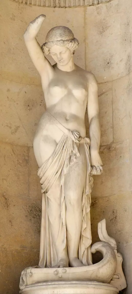 《沐浴的狄安娜》(Diana),高度1.7米,作者Christophe-GabrielAllegrain(1710–1795)。作于1778年。这是Madame Du Barry 夫人为她的Louveciennes 城堡订制的两件雕塑之一:配对的另一件雕塑是下面的《维纳斯》。