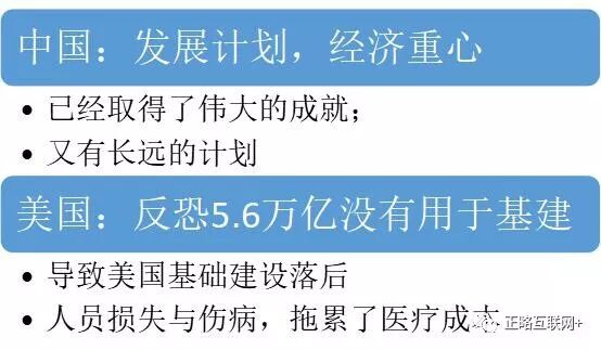 标杆分析:中国的5大战略 这五大方面(制造业2025,商业一带一路,信息领域5G,金融技术革新,人民币国际化),配合经济发展计划,是中国领导人认为他们应当走的道路。这样到2030或2035年,他们就可以成为世界第一经济体。15年以后,他们要成就世界霸权。西方对此是如何应对的?西方的反应是…直到川普当选总统之前,西方对中国的反应相当混乱。